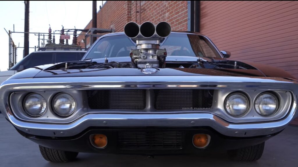 We present a modified version of the 1972 Plymouth Road Runner that produces 1,100 horsepower without the use of a turbocharger. The hungry V8 is fed by dual King Demon 1080 cfm carburetors. The original torsion bar suspension with modified shocks is used on the Custom Road Runner. A 727 TorqueFlite transmission channels power to the Dana 60 rear end. Interior is intact except the front seat cover and a new set of carpets.