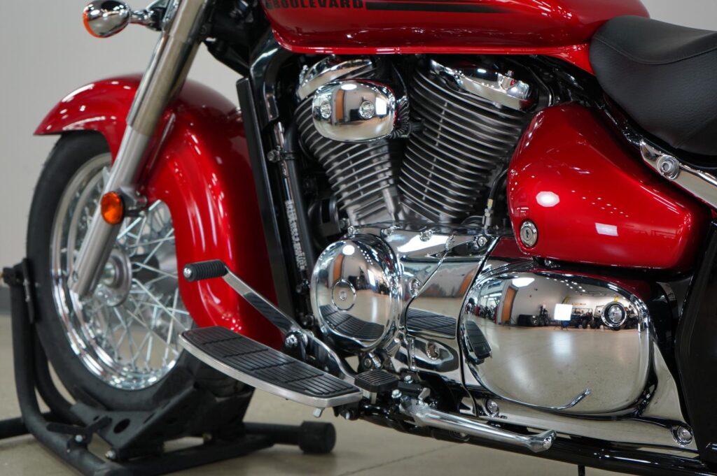 The Suzuki Boulevard C50 stamps a bold impression on traditional cruiser styling that includes kicked-out forks and a staggered, chromed, dual exhaust system; the Boulevard C50 turns heads wherever you ride.