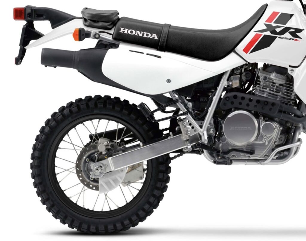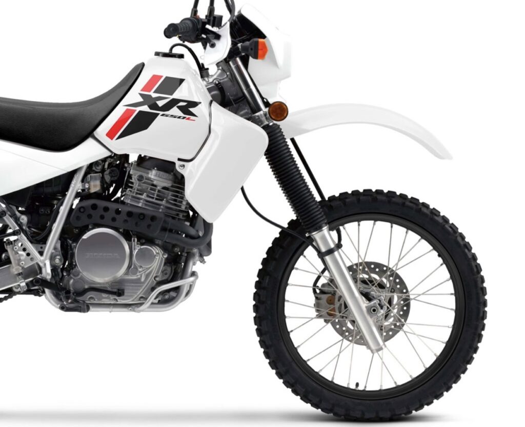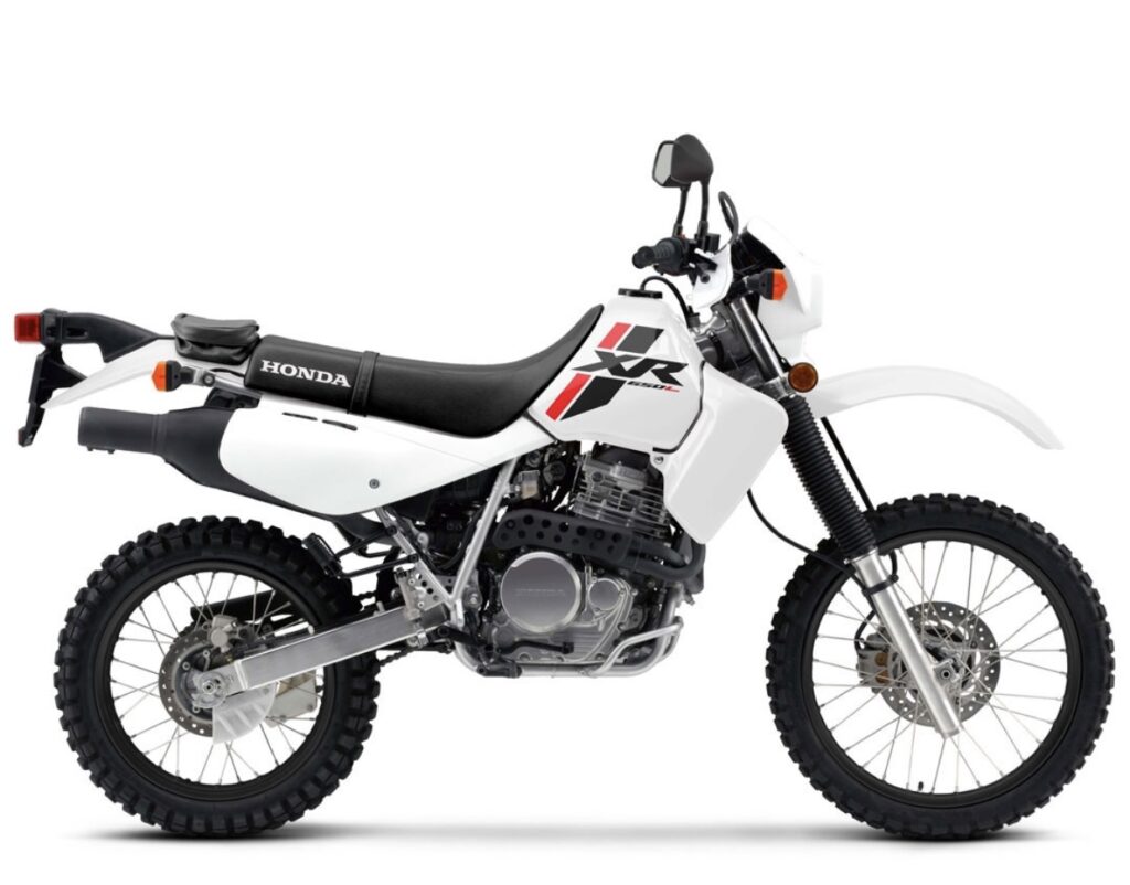 The Honda XR650L is a durable and functional dual-sport motorbike.