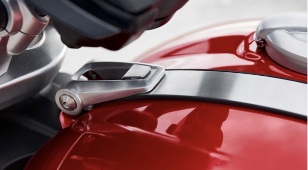 Rocket 3 is powered by the 2,500cc triple engine delivering massive 221 Nm of torque @ 4,000rpm and peak power of 167 PS available from a low 3,500rpm, up to 7,000rpm. Worlds largest production motorcycle engine equipped Rocket 3 has demonstrated 0-100Kmph in just 2.73 seconds. Engine is paired with a six-speed helical-cut gearbox and a ’torque assist’ hydraulic clutch.