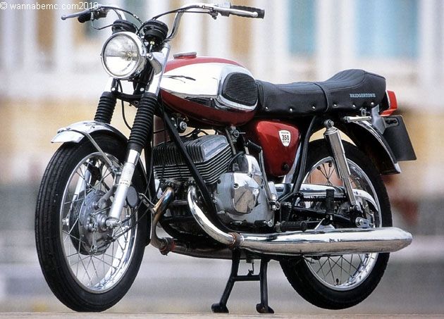Bridgestone’s twin used a disc valve (one for each cylinder) on each end of its crankshaft, with a 26mm Mikuni carburettor bolted outside each valve. Another neat feature was the ‘piggy-back’ alternator, situated above the engine rather than at the end of the crankshaft, which allowed the GTR unit to be quite slim despite its side-mounted carbs. Peak output was normally claimed to be 37bhp at 7500rpm, although the figure of 40bhp was also quoted in places.