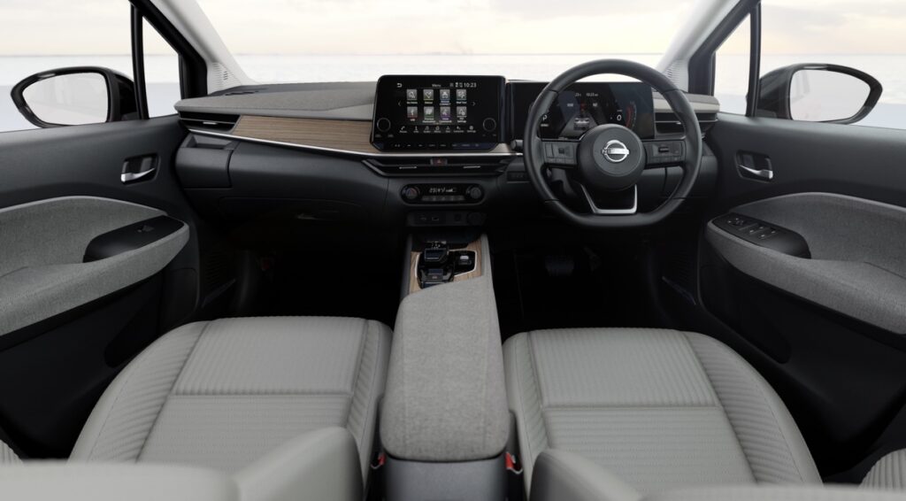 Note Aura features a well laid out interior with zero gravity seats offered in fabric – leather combination. Wood grain finished center console and instrument panel add to it’s premium appeal. Audio system developed together with Boss features Bose Personal Plus sound system speakers (optional) on front passenger headrests provides premium acoustic experience. Cabin quietness and comfort is class leading.