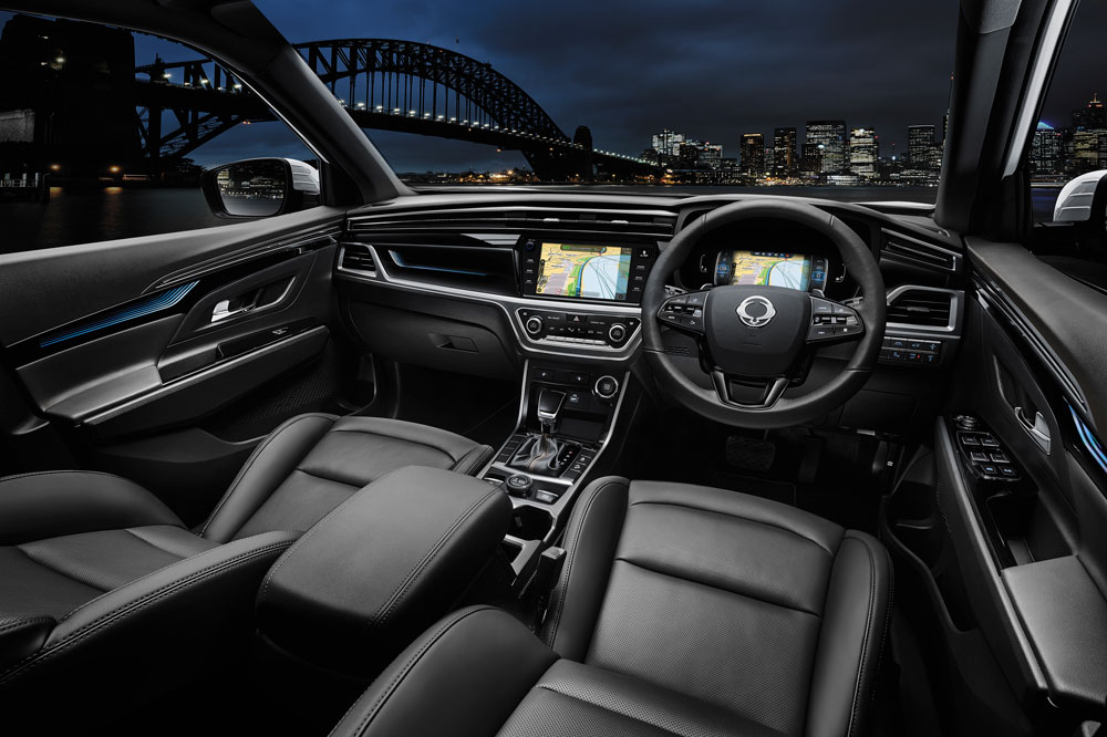 The interior of new Korando exudes contemporary styling and a high-quality finish. The wrap around feel comprises metallic features, large LCD screens, stylish mood lighting and lush leather seats. Korando boasts great interior space and comfort for both driver and passengers with ergonomically designed seating for all and generous legroom front and rear.