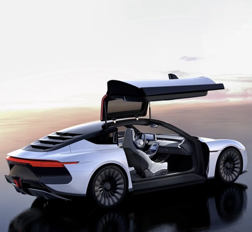 The Alpha5 design is inspired by it’s iconic predecessor DMC 12 featured in “Back To The Future” movie franchise. Alpha5 features signature gull-wing type doors and a fluidic design with sculpted front end.