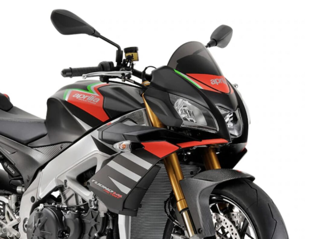 Tuono V4 available in the Tarmac Grey and Glacier White colour schemes adopts the characteristics of a street sport bike. It features a raised handle bar for more comfort, a protective top fairing, comfortable saddle and lowered footpegs.