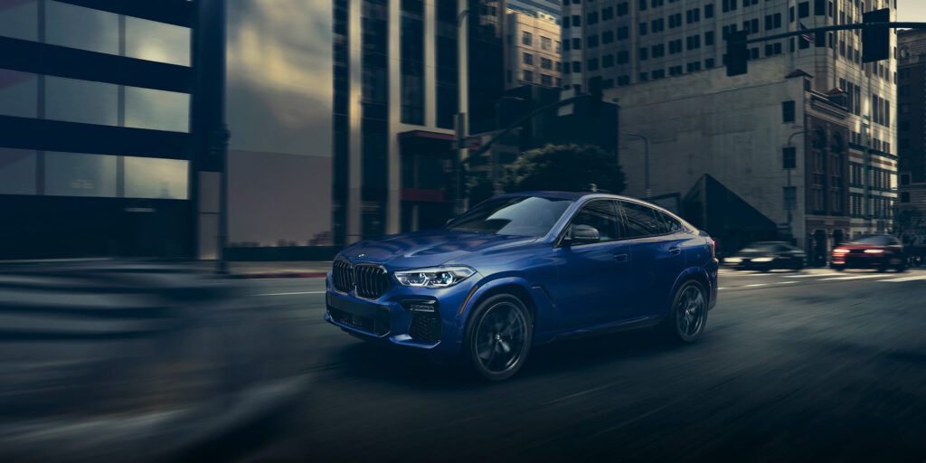 The boldness of the BMW X6 is unmistakable. From the coupe-like roofline to the chiseled profile, this Sports Activity Coupe sends a message of power and prestige. Expressive and dominant from every angle, the BMW X6 sports a wide stance, horizontal contours, and standard Adaptive Full LED Headlights.