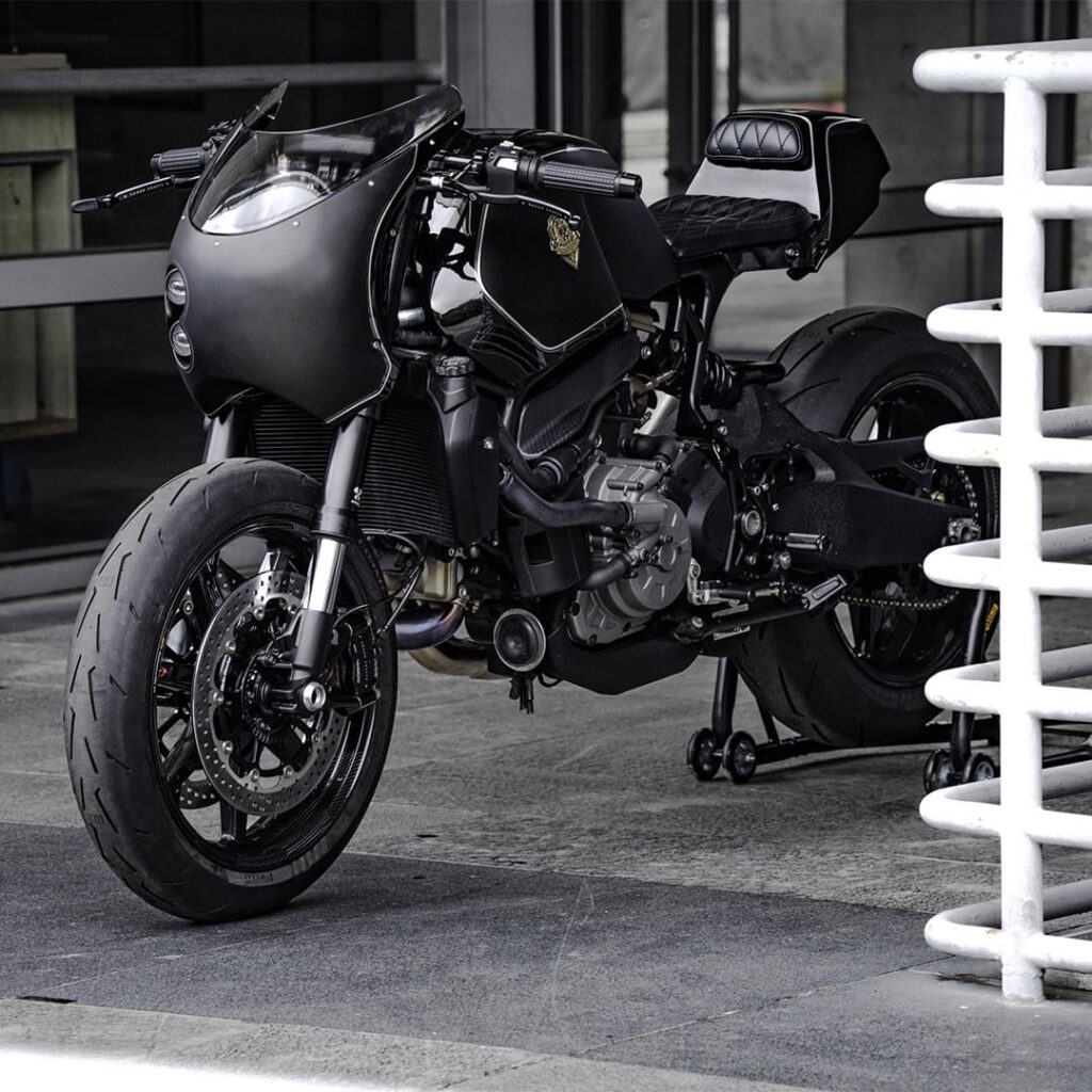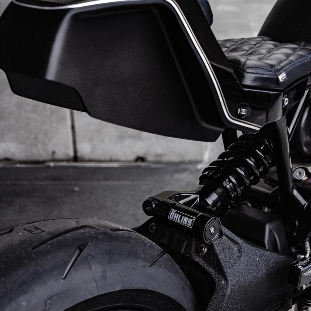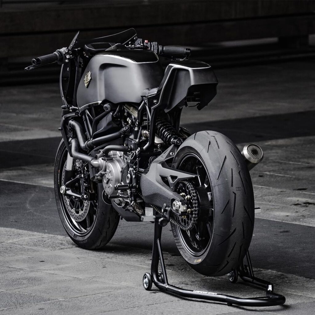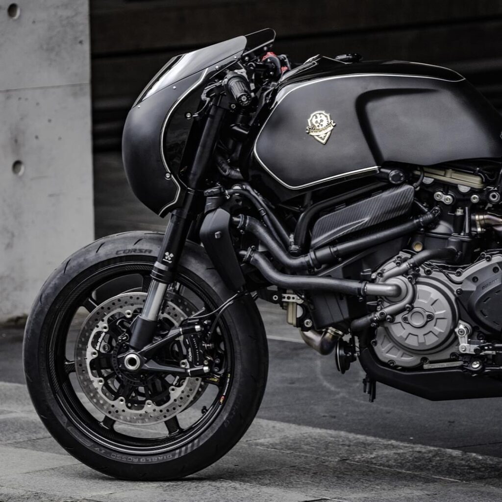 Here we have a custom made Monster 821 by builder Rough Crafts nicknamed “Bologna Dog Fight”. Rough crafts have done an impressive job in creating this beautiful piece of art. Basic design of Dog Fight is inspired by previous custom offerings by Rough Crafts including a Ducati Monster and a BMW R NineT. The custom 821 features SC-Project retro megaphone mufflers, two piece leather seat, custom aluminum fuel tank, CNC milled sub-frame, BST 17” carbon fiber wheels, Pirelli Diablo Rosso IV Corsa tires.