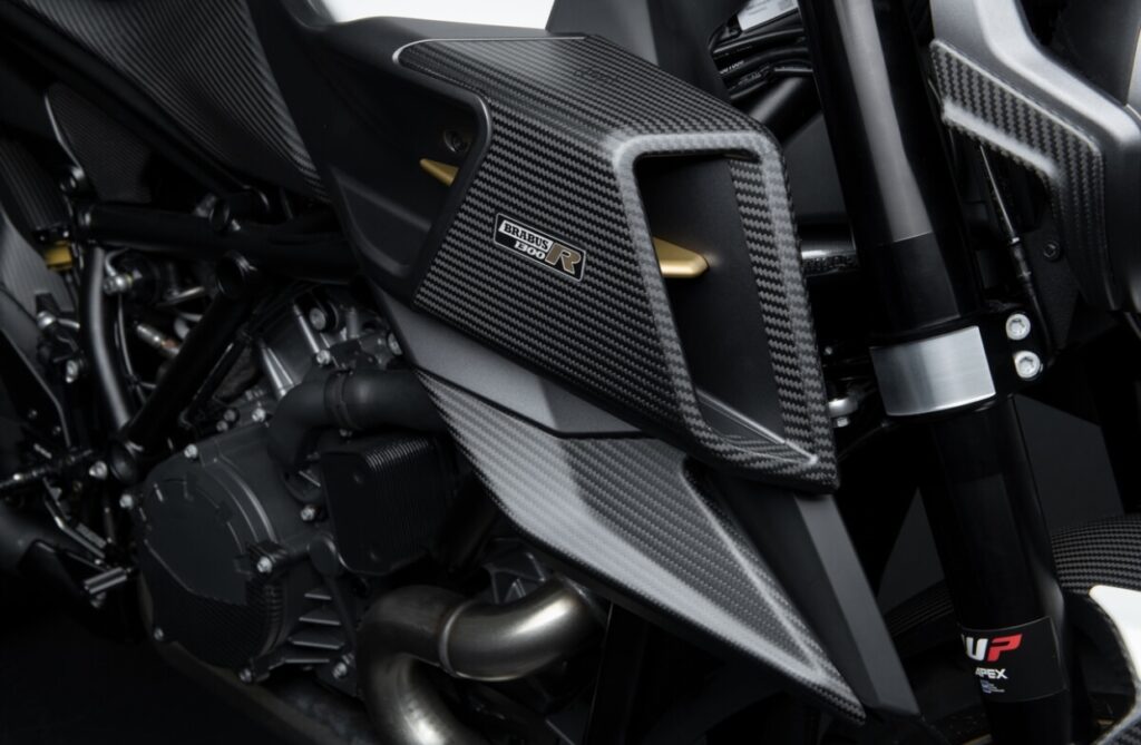 A total of 290 motorcycles made up the second edition, the Edition 23, which also sold out rapidly. The KTM 1290 SUPER DUKE R EVO served as the platform in both instances. The manufacture of the BRABUS series is soon coming to an end. As a farewell to this fascinating hyper-naked bike, the exclusive BRABUS 1300 R MASTERPIECE EDITION is offered: a series of two times 25 exquisitely refined motorcycles in the colors “Onyx Black” and “Diamond White,” which are given even more extravagant looks with select elements finished in the color “Frozen Gold,” and an even larger carbon package.