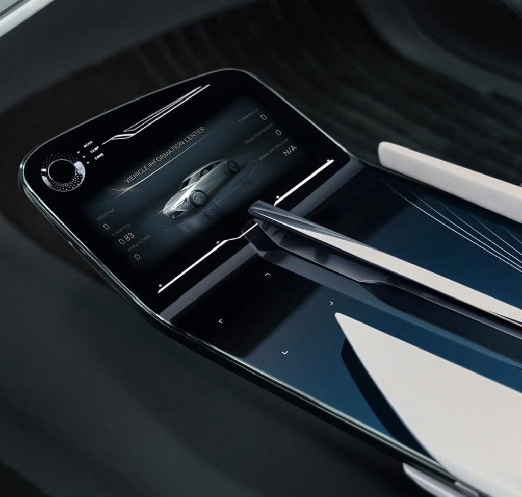 When the driver approaches, the lighting elements are set to produce a unique greeting choreography. It has a relaxed proportion that is matched by a low, wide stance. To emphasize the aggressive character, the windshield wraps around and flows into the side glass, which tapers drastically with the quick roofline.