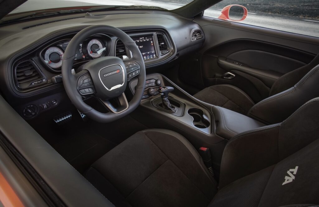 The SRT Hellcat Redeye is powered by a supercharged HEMI Demon V8 producing 797 hp and capable of doing a 0-100 km drag in 3.4 seconds. The TorqueFlite 8HP90 eight-speed automatic transmission with upgraded torque converter handles the massive horsepower and torque, delivering an 18% increase in torque multiplication over the standard Challenger SRT Hellcat.