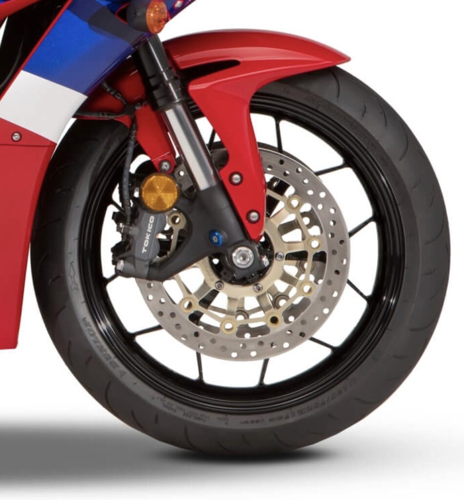The highly refined CBR is equipped with updated aluminum frame and premium suspension offers light and crisp handling. 41mm Big Piston Fork at the front and a Unit Pro-Link rear suspension provides riding effortless. Braking power is provided by four-piston radial mount Tokico calipers aling with 310mm discs. Each caliper also uses four chromium-plated aluminum pistons for smooth, friction-free operation.