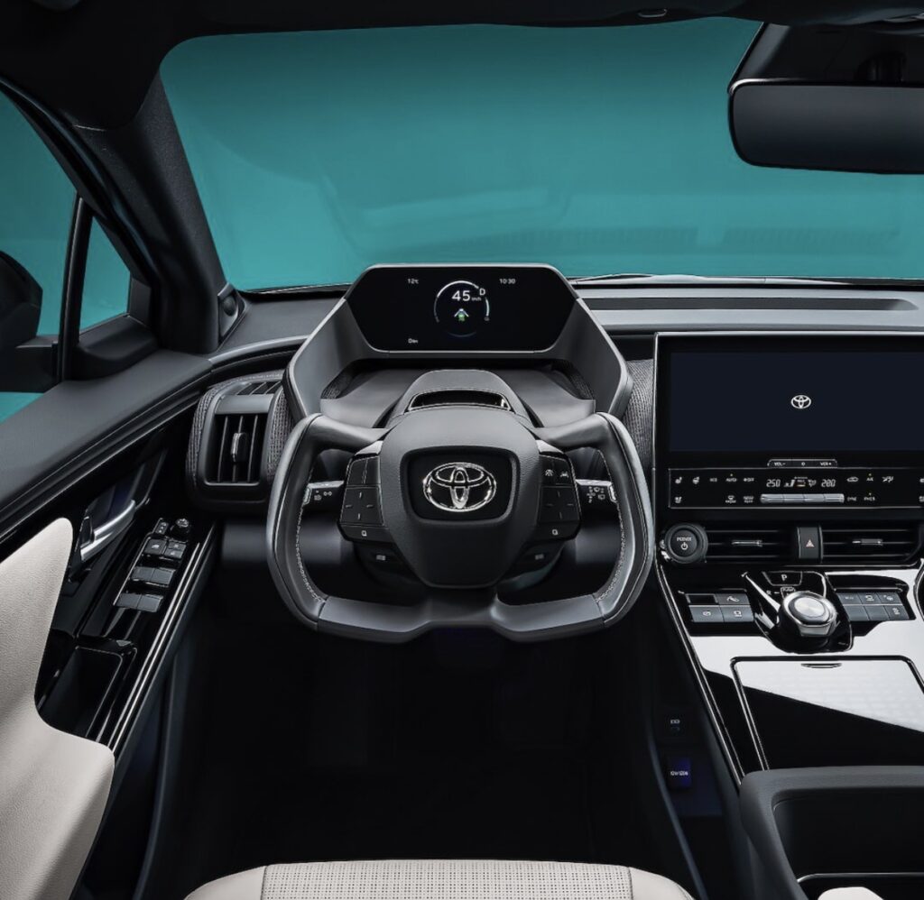 Apart from the electric power train bZ4X is equipped with an on-board solar charging system, which further increases the range. The all-wheel drive system powered by electric motors on the front and rear axles is developed jointly by Toyota and Subaru. bZ4X concept also equipped with a steering Yoke and steer-by-wire system. Steering hoke replaced traditional steering wheel with a uniquely shaped steering yoke adding fun to drive.