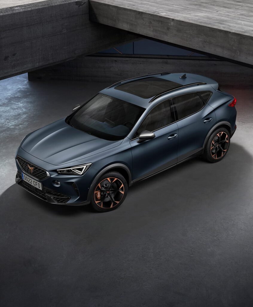 The two-tone body is reminiscent of a robust all-terrain vehicle, but the CUPRA Formentor’s design uses the aesthetic technique to lighten the vehicle’s silhouette.
