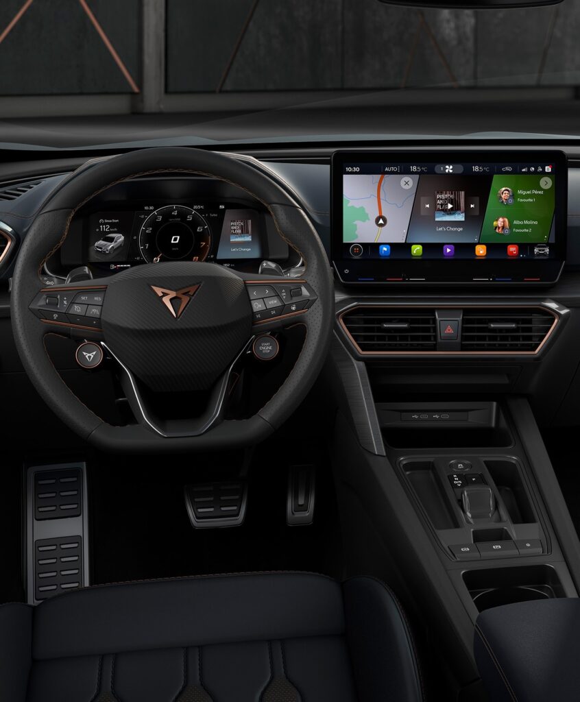 Formentor features 12” infotainment system combines the Full Link system compatible with both Apple CarPlay (wireless) and Android Auto. Safety features include Predictive Adaptive Cruise Control, Emergency Assist, Travel Assist, Side and Exit Assist.