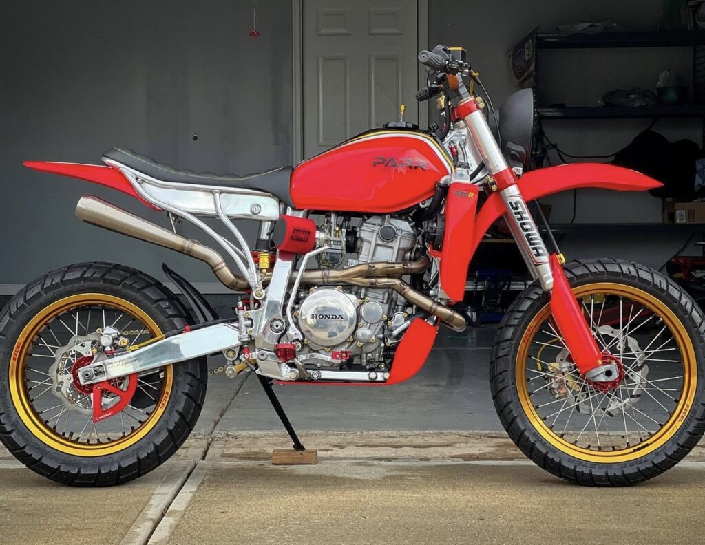 Custom scrambler made by Parr Motorcycles based on Honda XR650R Street Tracker. Honda XR650R is a legendary dual sport motorcycle launched in 2000. It is powered by 649cc, liquid cooled, SOHC engine. The powerful engine and light weight frame contributed to XT650’s Baja 1000 and severa other desert race wins.