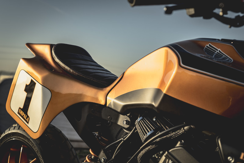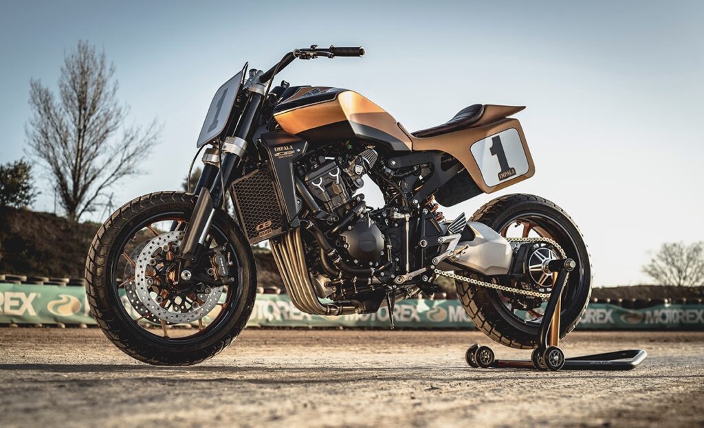 The custom street tracker made by Honda Impala features a custom subframe with an integrated seat, rear cowling unit, and side number plate.