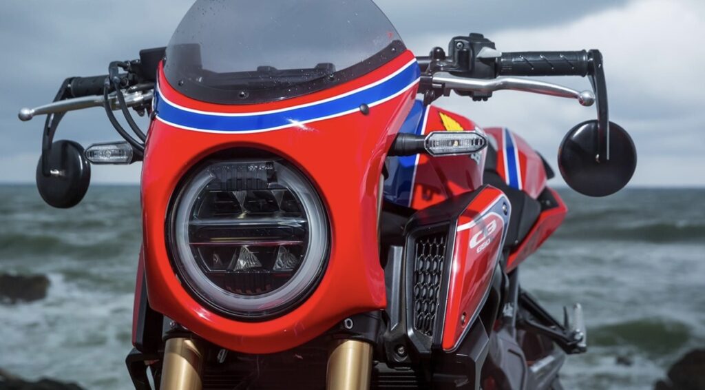 Within the realm of custom motorcycle modifications, the jaw-dropping street fighter is extremely well-liked. The standard option for a good number of the industry’s most prominent motorcycle customizers. Sagaz Honda, a dealership in France that sells Honda motorcycles, has created an incredible custom motorcycle, and we are going to show it to you now. The one-of-a-kind Honda CB650R that has been given the name “Four” sports an eye-catching red paint job with blue and white accents. The renowned Honda RCB1000 from 1976, which Jean-Claude Chemarin and Christian Léon used to compete in endurance racing in the 24 Hours of Liège, served as inspiration for the paint job on the motorcycle.