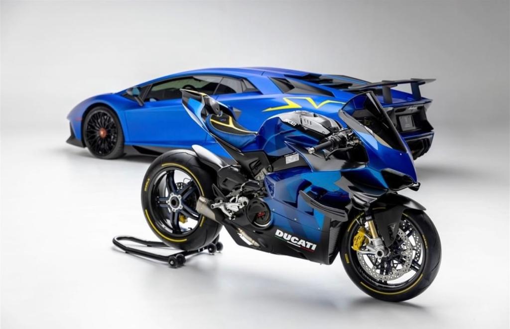 The Ducati dealership in Newport Beach, California, collaborated with Lamborghini to create a limited-edition Superleggera V4. Lamborghini Aventador SVJ-inspired blue livery adorns the Superleggera V4J, which stands for “Jota,” meaning track performance.
