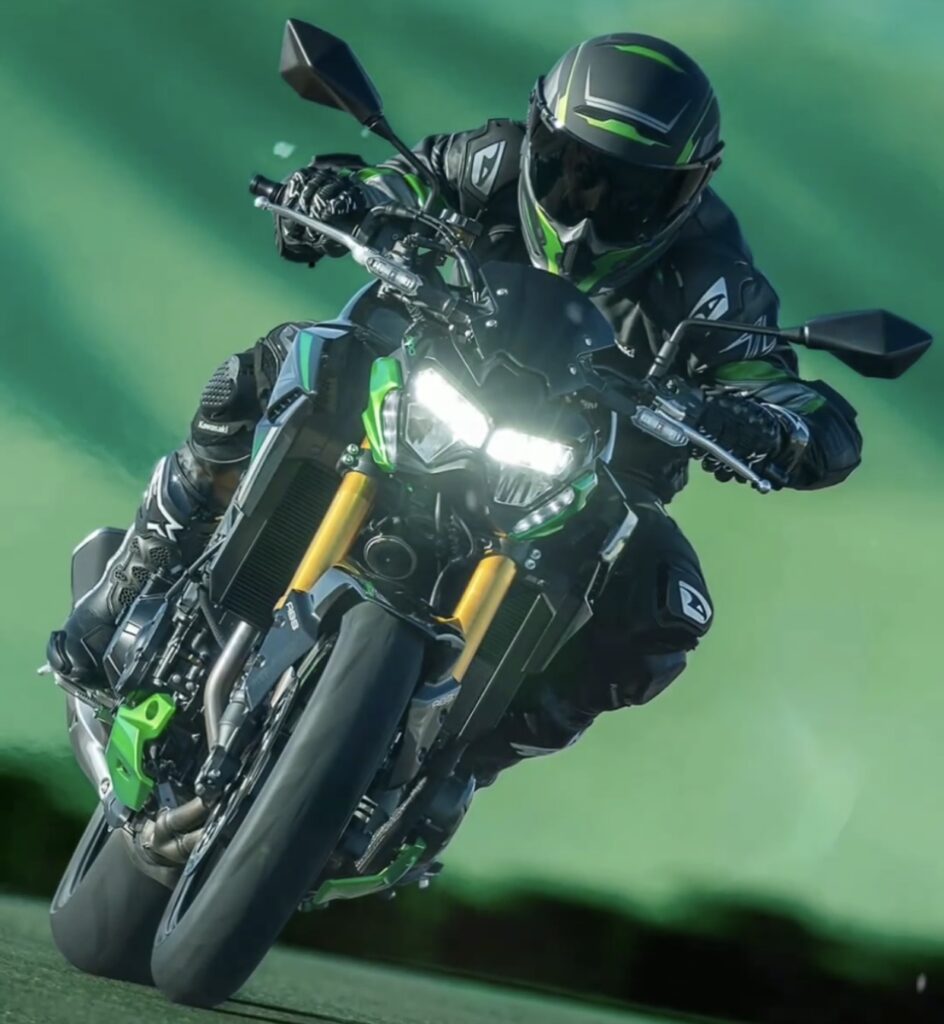 The 2022 Z900 SE is powered by 113 hp 948cc in-line four. Equipped with fully adjustable 41mm inverted fork and fully adjustable Öhlins S46 rear shock with a remote preload adjuster. The naked street fighter styled by Kawasaki’s “Sugomi” design concept is aggressive with an exposed subframe.