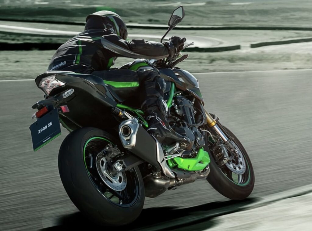 Z900 SE features multiple ride modes, traction control, Brembo M4.32 4-piston front calipers and Nissin radial-pump master cylinder with 300mm discs at the front and 2-piston caliper with 250mm disc at the rear.