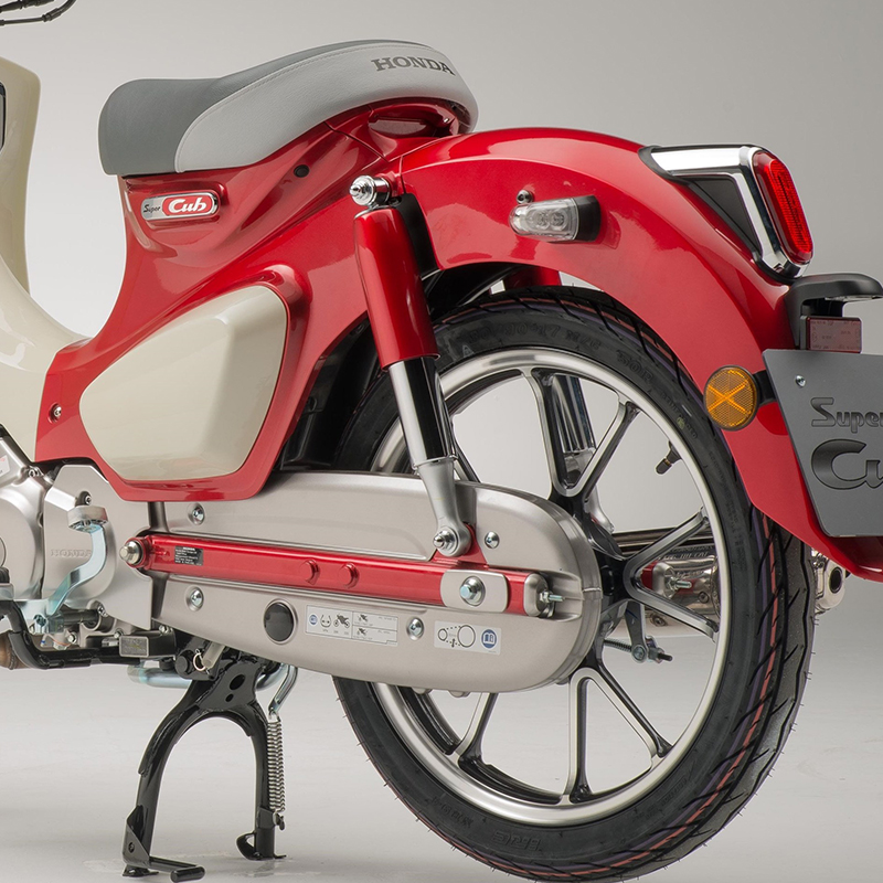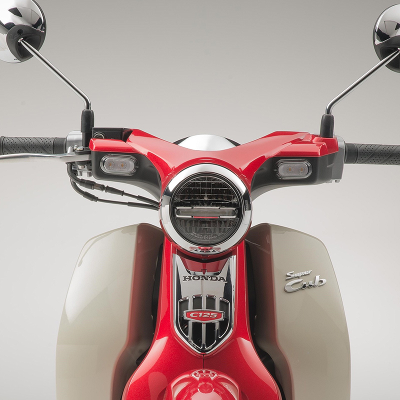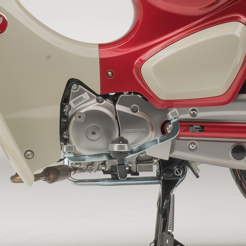 While the look of the new Cub does not deviate from the classic template, an increase in power and torque thanks to its 125cc engine helps keep the Super Cub ahead of city traffic; its automatic centrifugal clutch has also been upgraded to match the output boost and give ultra-smooth, quiet gear changes.