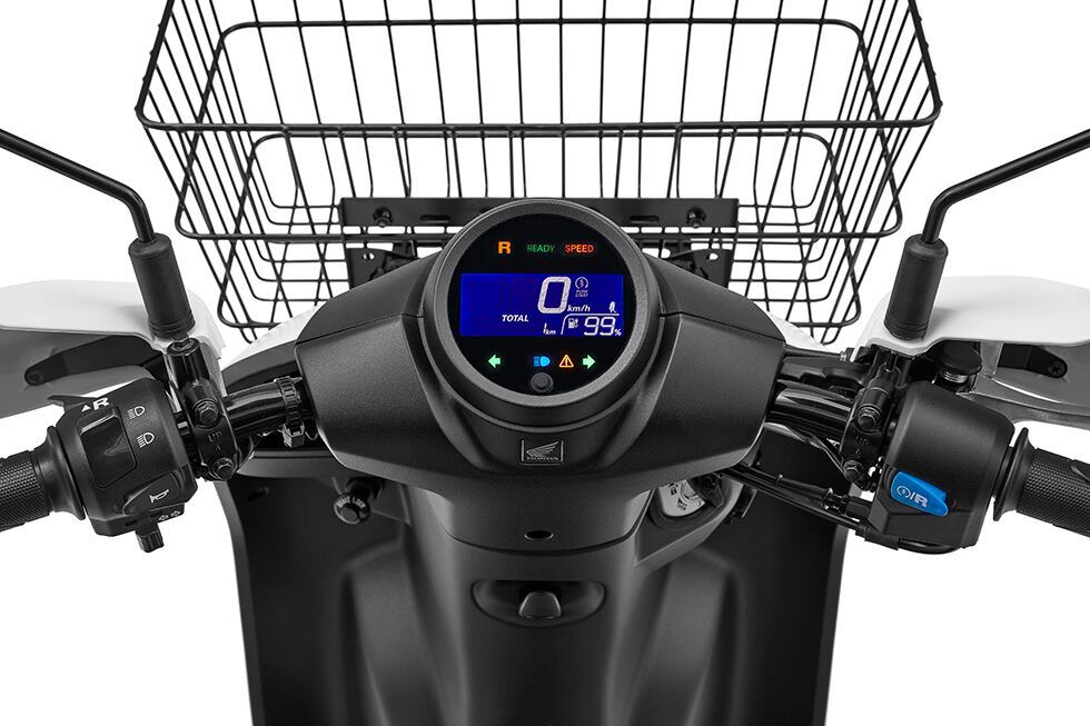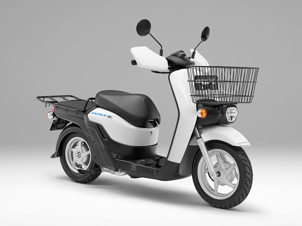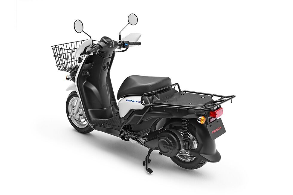 BENLY e: models are powered by two units of the Honda Mobile Power Pack (MPP) detachable and easily-swappable battery. In addition to outstanding environmental performance, which can be achieved only by clean and quiet electric mobility products which emit no CO2 in use, BENLY e: models demonstrate powerful and smooth starting and hill climbing performance even when carrying cargo by leveraging the unique characteristics of their motor which generates ample torque even from a low rev range.