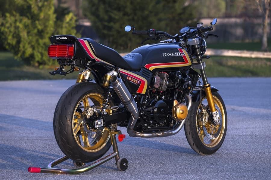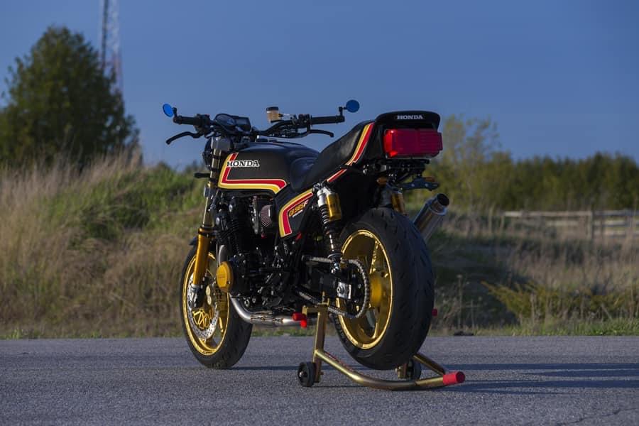 The CB900F was launched by Honda in 1979 and sold through 1983. CB900F’s design was based on CB750F – Honda’s flagship superbike of the time. CB900F featured a slightly shorter wheelbase and 22.5-pound increase in weight, while boasting a whopping 20 percent increase in displacement compared to CB750F. It’s powered by a 901cc DOHC, 4 cylinder engine producing 95hp @ 9,000rpm mated with a 5-speed transmission.