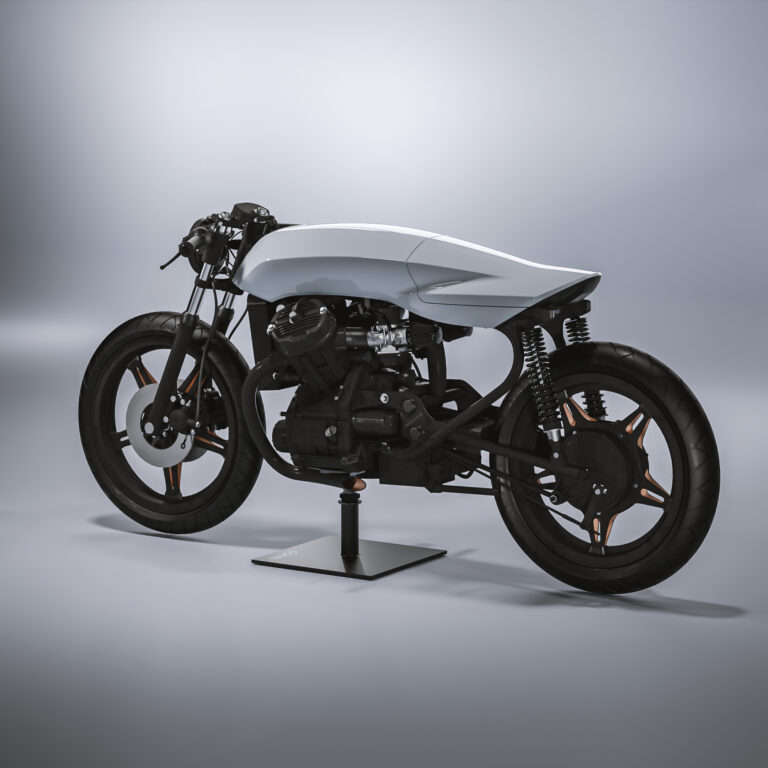 Dotto Creations of Italy customized a 1979 model year CX500 called as The Biancaneve. The cafe racer is equipped with a fairing from the handle bar till the tail end, customized front and rear shocks and clip on grips.