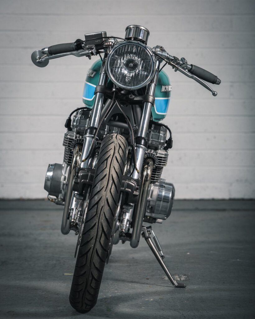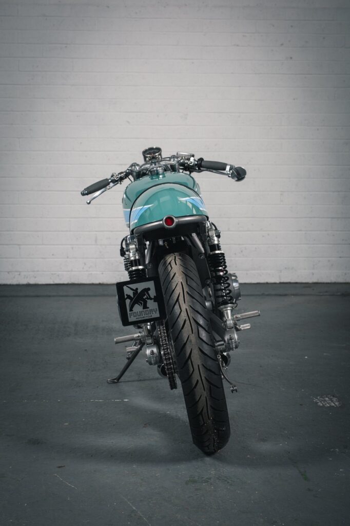 Custom1977 model year Kawasaki Z650 B1 by Foundry Motorcycles, UK. This great looking Cafe Racer features fully rebuilt engine, wheels and spokes. Custom Kawasaki Z650 sports original fuel tank, Dynatek ignition and coils, Stainless steel exhaust system, YSS rear shock absorbers, Integrated stop/tail light and Avon Road Rider tyres.