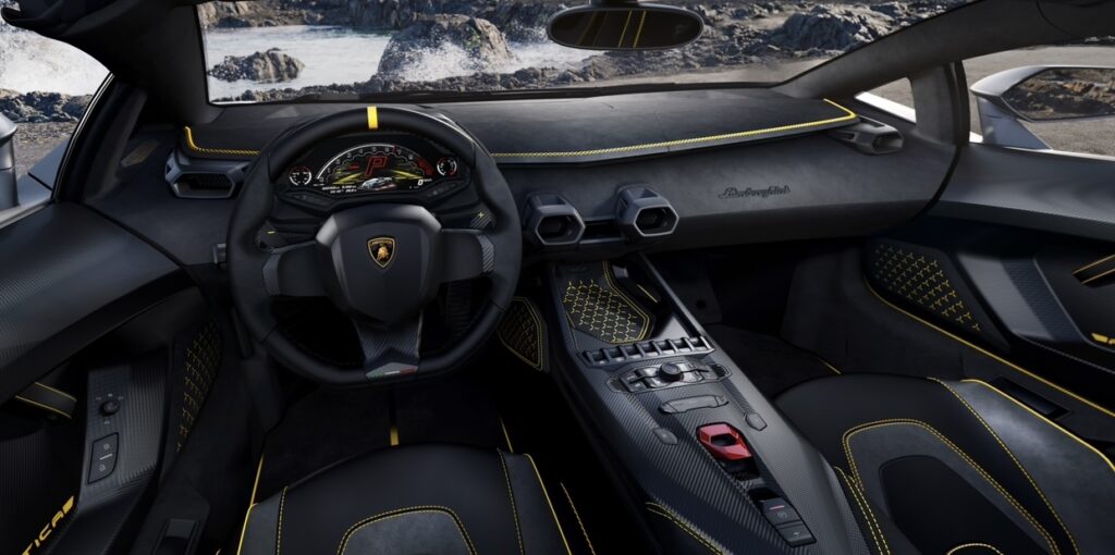 Both vehicles have a Sant’Agata Bolognese-produced carbon fiber monocoque from the Aventador, as well as a full carbon body that uses Lamborghini-developed design and technological innovations that have been successfully tested in race. The imposing bonnet is a carryover from the Essenza SCV12, as is the prominent front splitter, which features vertical struts for the best effective airflow management.