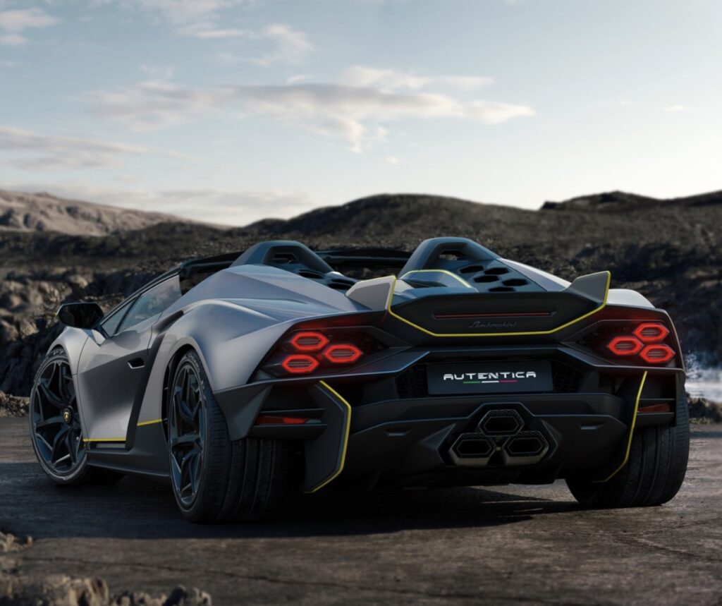 Invencible and Auténtica, created by Lamborghini Centro Stile, pay homage to three of Lamborghini’s most iconic designs: the Sesto Elemento, a tribute to lightness and motorsport distinguished by a large rear wing; the Reventón, with its distinctive aeronautical style; and the Veneno, which pushes the boundaries of aerodynamic perfection.