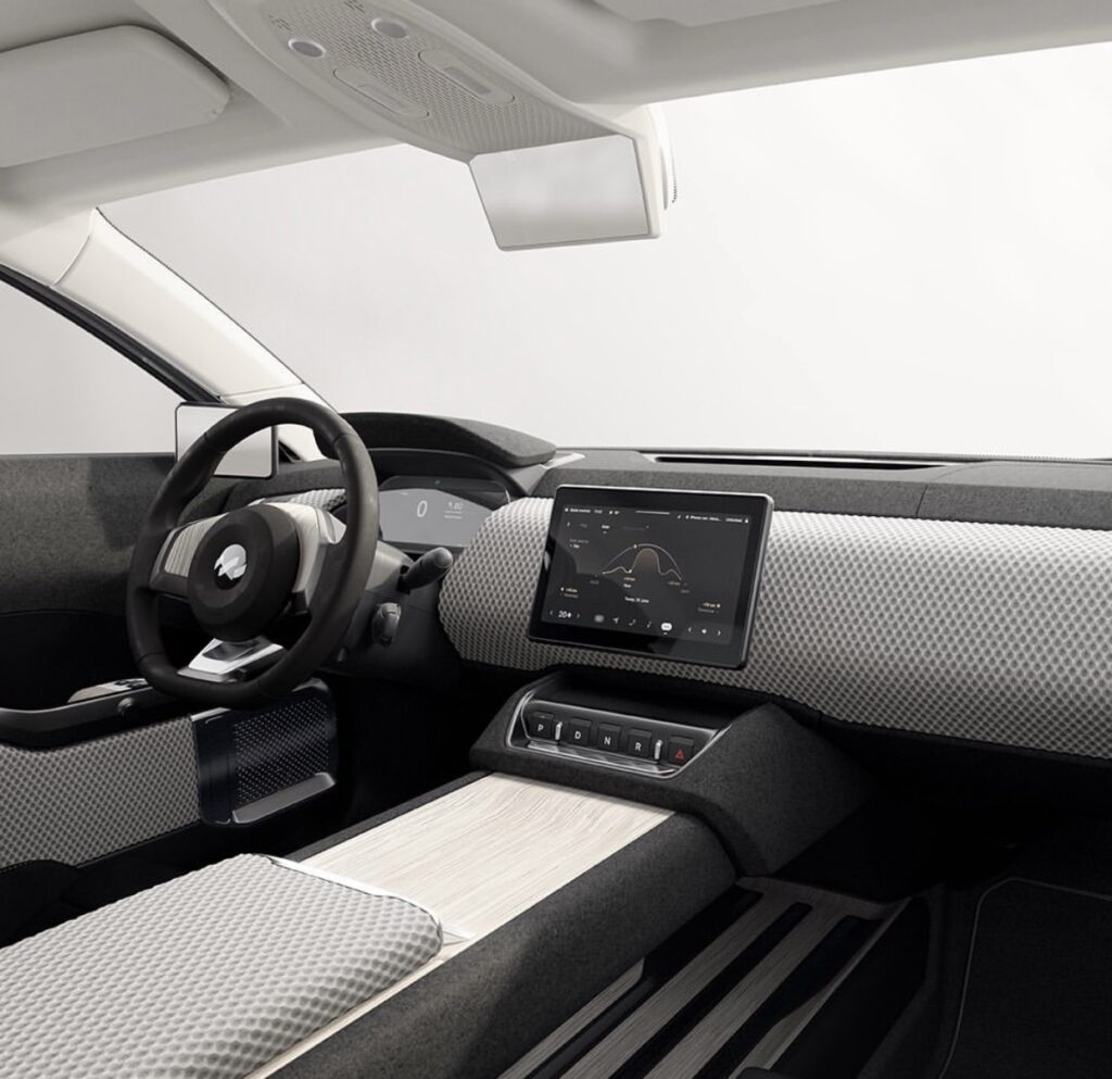 Interior features a minimalist design with a stylish dashboard and a 10.1” touchscreen infotainment system providing vital cloud based information. Lightyear 0 contributes to sustainability by the use of naturally-sourced materials such as ecological microfiber suede seats and rattan palm detailing.