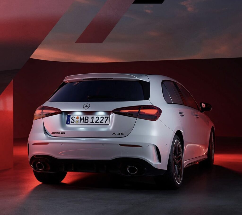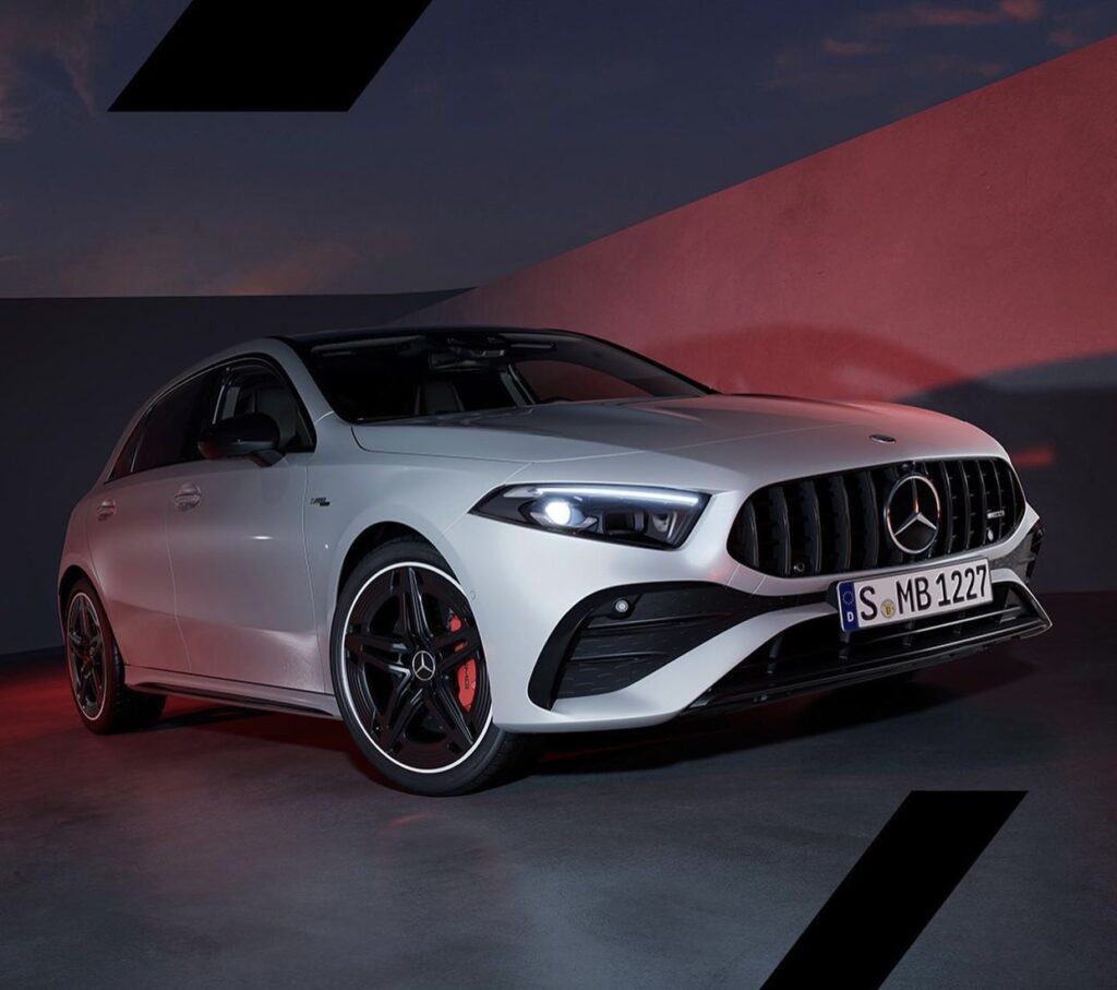 The compact entry level Mercedes is beefed up by AMG. The performance hatch is powered by a 2.0-liter turbo charged four pot producing 306 hp and 400 Nm of peak torque @ 3,000 rpm. The twin-scroll turbocharger used combines optimum responsiveness at low engine speeds with a strong power increase at higher speeds.
