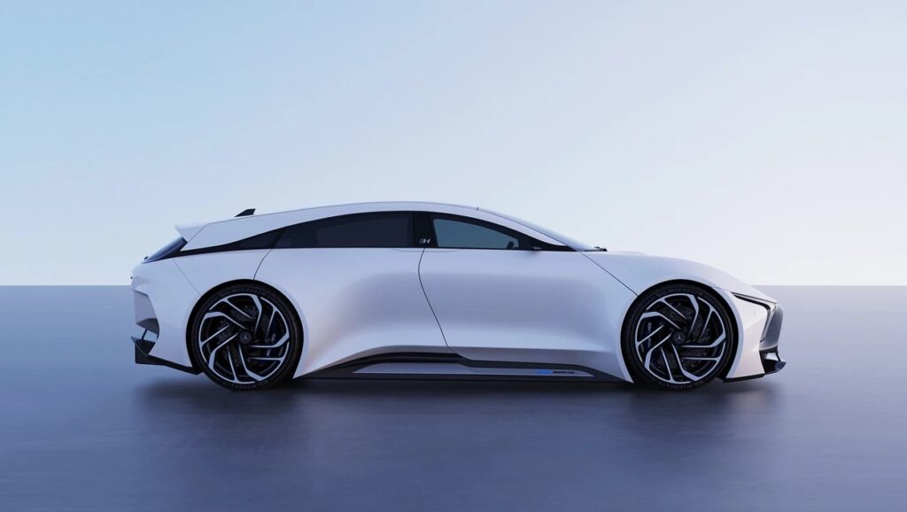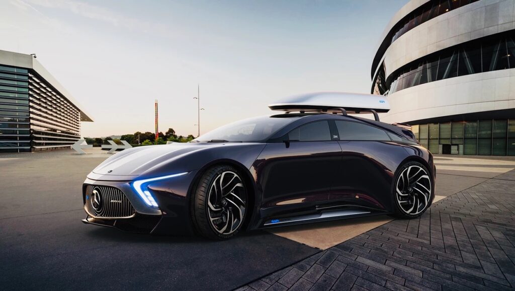 The EQR features a sleek exterior styling; a coupe-like front door and a suicide rear door with hypercar quality fully carbonfiber body surfaces, aero adjustable front splitter and rear diffuser. Overall dimensions: 5m length, 2m width, 1,4m height with 24″ AMG style original wheels.