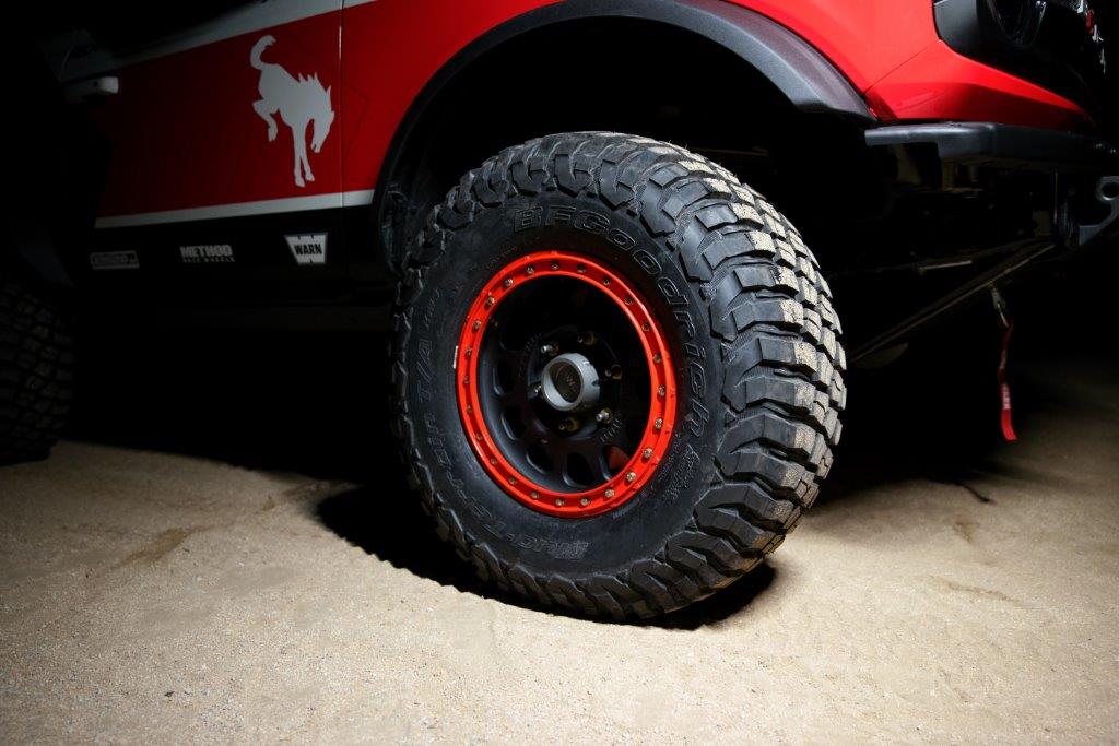 Bronco 4600’s competition-tuned high-performance off-road stability suspension features Fox coilover shocks with remote reservoirs and Fox pneumatic bump stops at all four corners. It also features Wilwood Engineering brakes and 35-inch BFGoodrich mud-terrain T/A KM3 tires mounted to Method Race Wheels 202 Forged Beadlock wheels.