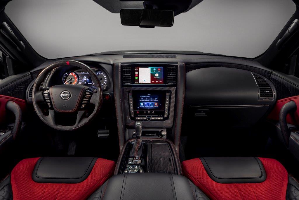 The 2021 Nissan Patrol NISMO sports upgraded Nissan Intelligent Mobility, Intelligent Emergency Braking with Pedestrian Detection, Intelligent Forward Collision Warning, Smart Rear View Mirror and a High Beam Assist. It also features Apple CarPlay compatibility, wireless charging capability and USB ports including USB-A and USB-C.