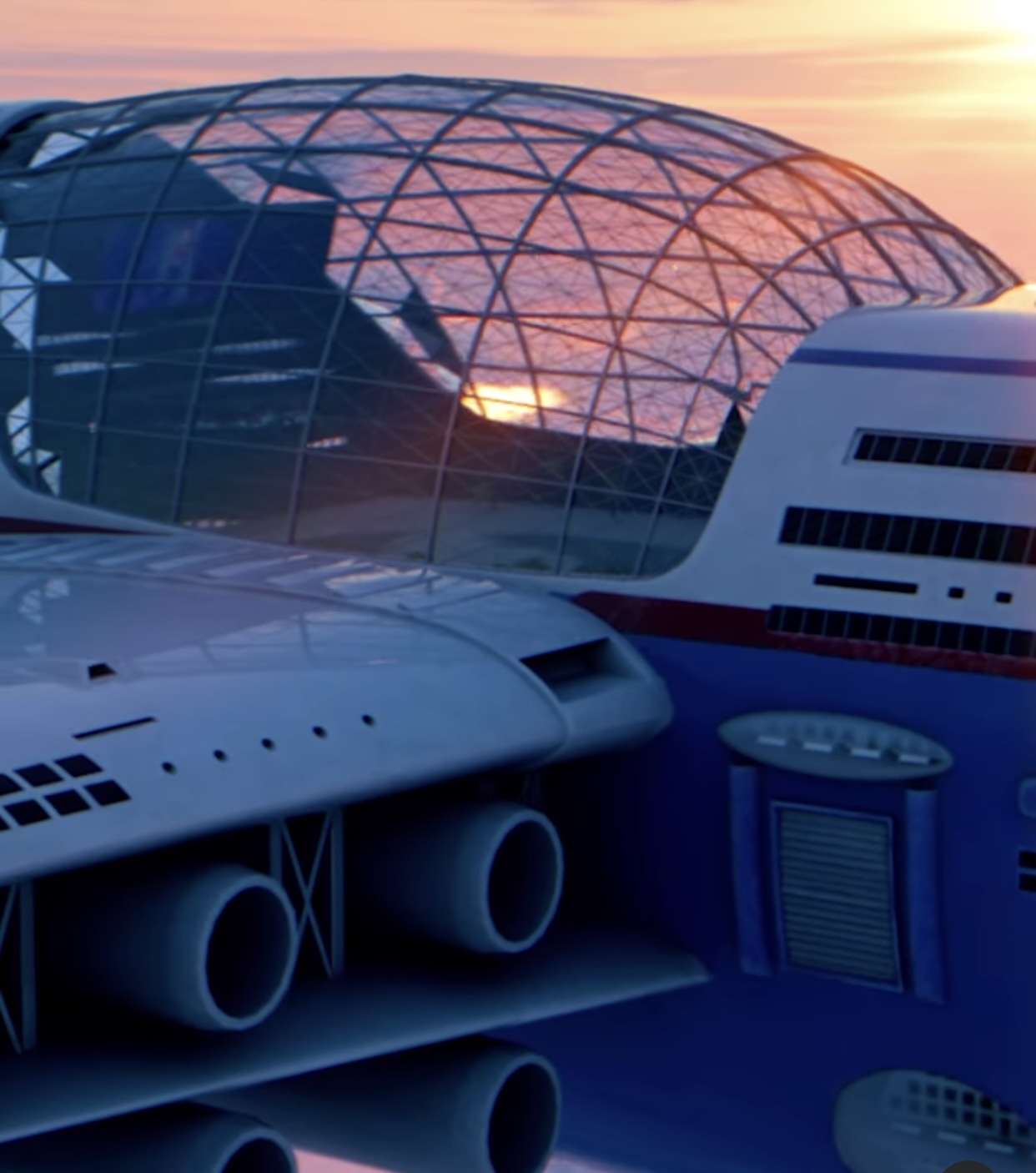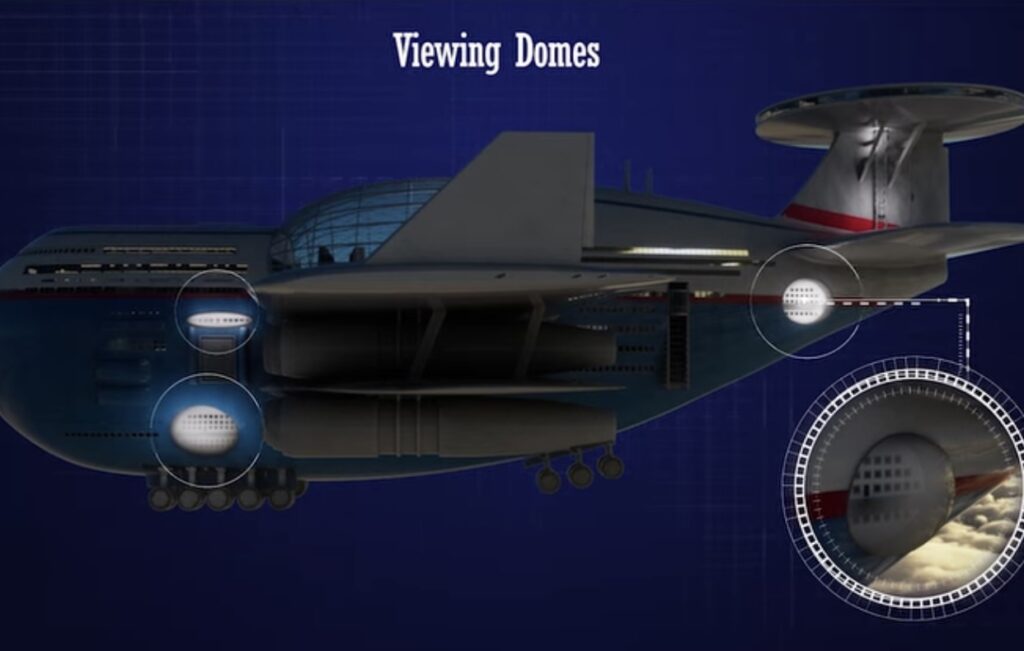 Hashem AI-Ghaili and Tony Holmsten created the futuristic Sky Cruise, which is operated by artificial intelligence. Sky Cruise has a range of several months without needing to land. Twenty nuclear fusion engines power the wild idea. The craft will undergo maintenance while it is still in the air. At their destinations, passengers will be picked up and dropped off.