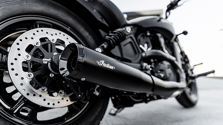The Scout Bobber Sixty maintains the stripped-down styling of the Scout Bobber, including chopped fenders and an aggressive riding position, while adding several cues that give the model a look of its own. The Scout Bobber Sixty features a blacked-out engine, a modern tank badge, perch mount mirrors, stripped down headlight, an all-black seat, and all new five-spoke all black wheels.