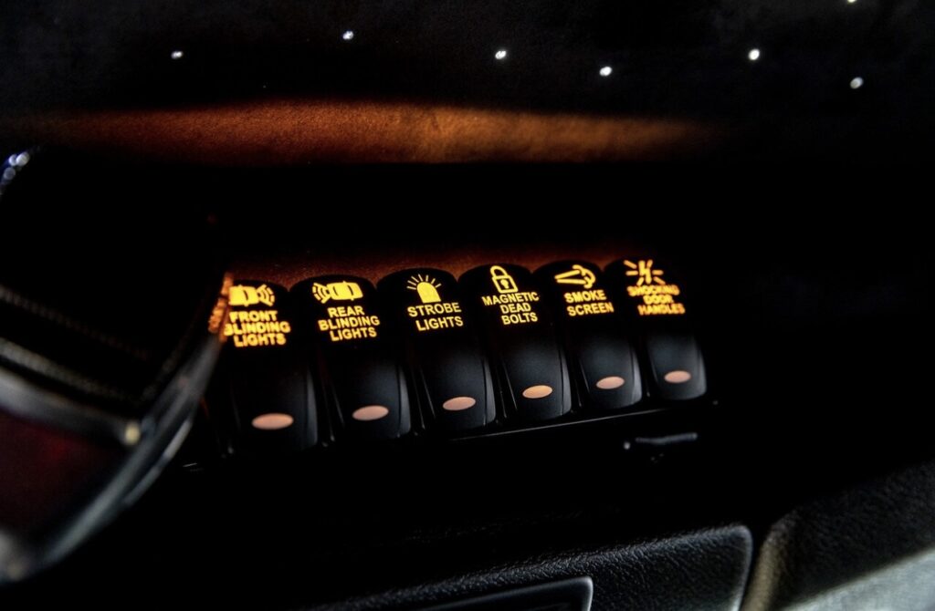 A well-appointed luxury interior, military grade gas masks, a hypothermia kit, and a first-aid kit are also notable features. It has strobe lights, sirens, and a full intercom system with external speakers and a microphone, allowing the driver to communicate with outside threats without having to open the doors or windows. With a steel bumper, a built-in winch, and D rings, it can ram through any situation if necessary.