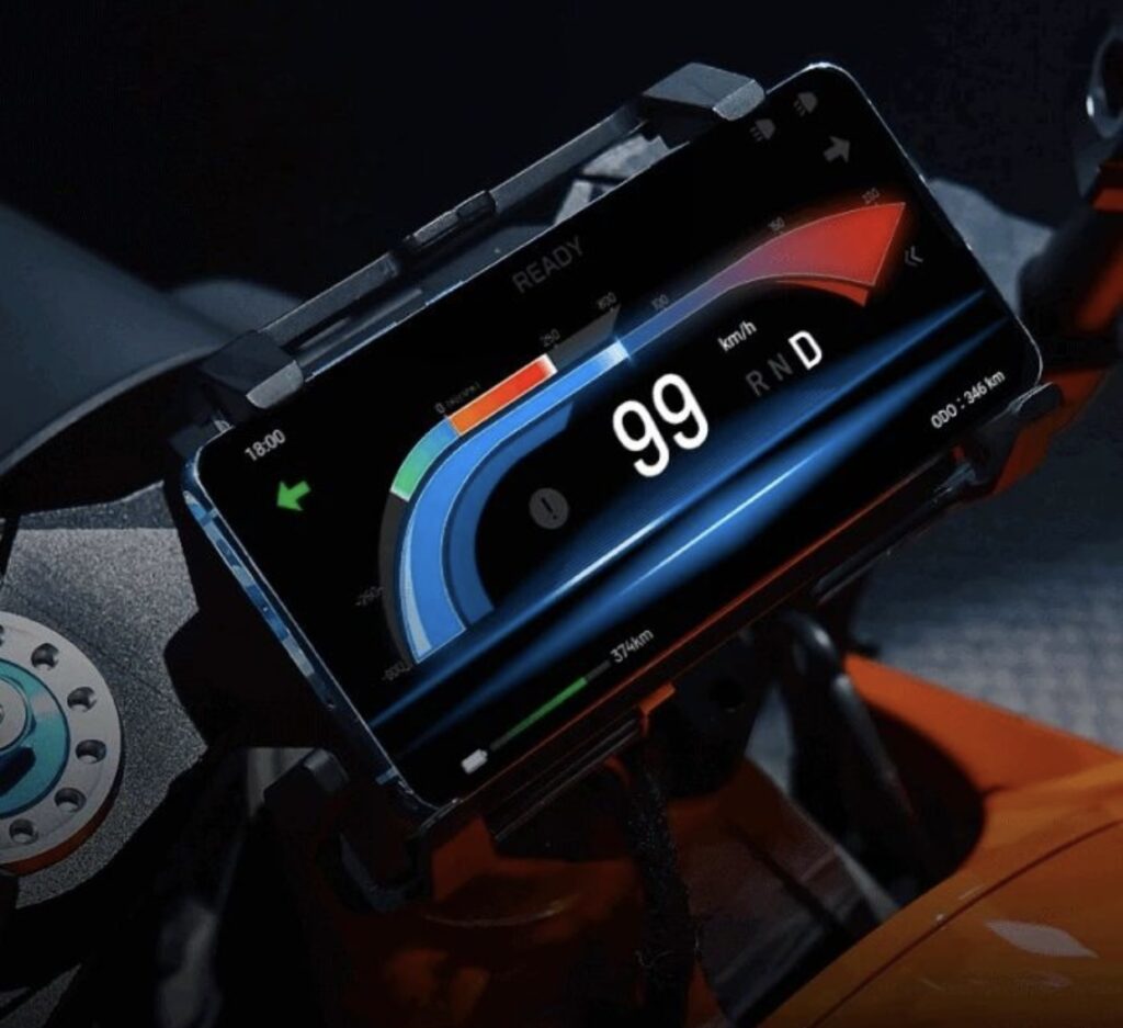 DC100 is a tech laden intelligent motorcycle equipped with a huge array of sensors and computer chips providing the riders live information on the environment, terrain info, vehicle status etc.