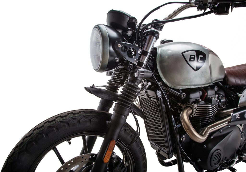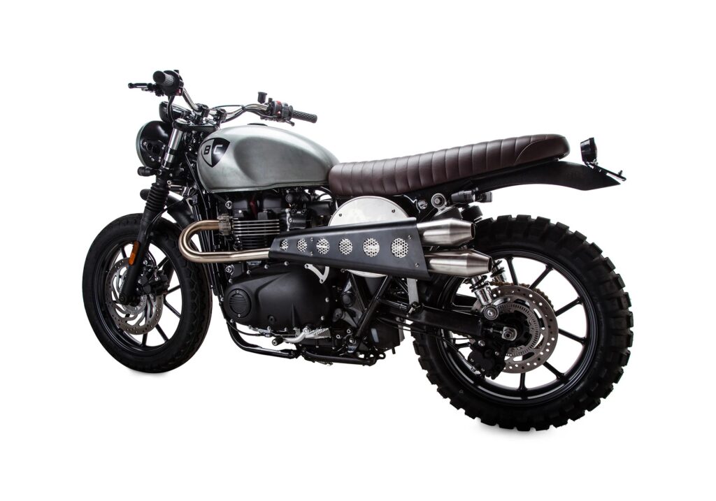 A 2016 model year Triumph Street Twin has been converted to a stunning street scrambler by custom builder British Customs. The custom scrambler features tracker handle bar kit with direct mount reservoir and Bitwell grips.