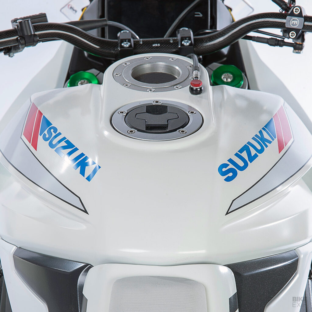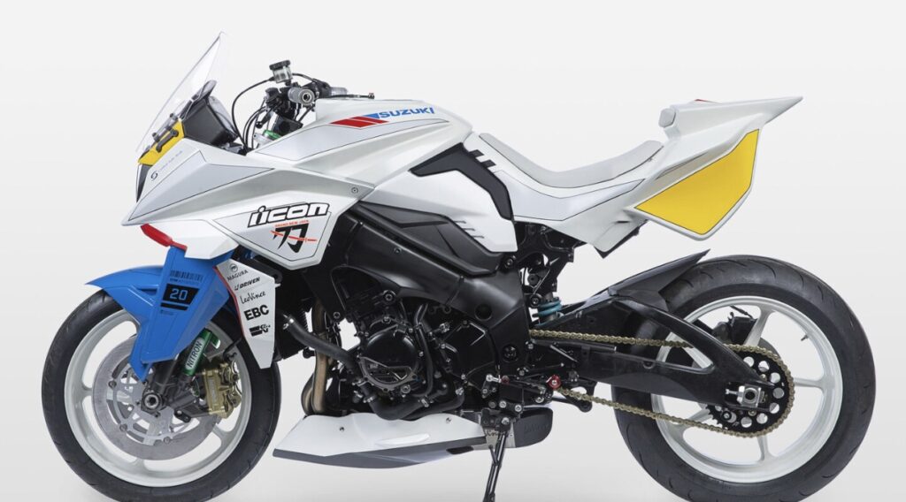 In 2020 Suzuki has partnered with motorcycle apparel maker Icon Motorsports to produce a one off custom Suzuki Katana. Custom Katana features twin endurance racing fuel ports, premium Nitron suspension, solid EBC rotors, Avon competition tires, and custom exhaust fitted from various Leo Vince components.