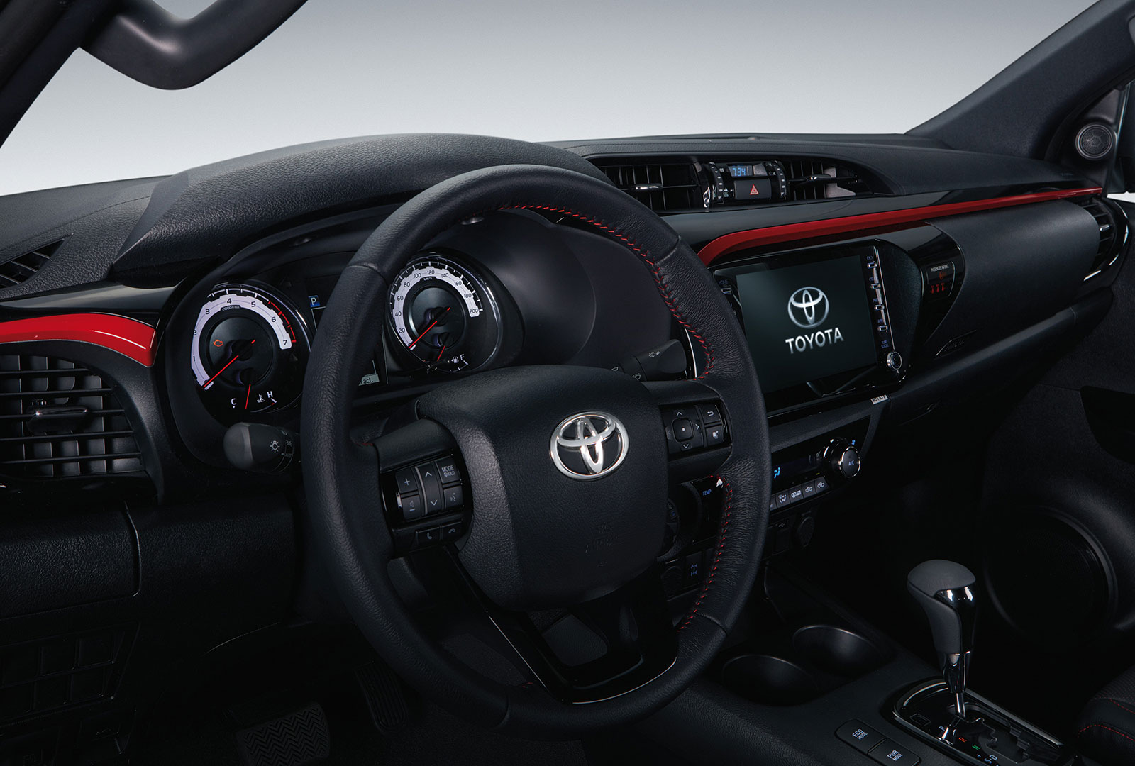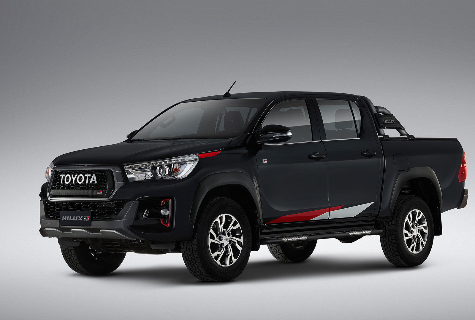 GR Sport model exterior sees the introduction of a blacked-out grille, bonnet, and roof alongside two-tone alloy wheels. On the inside, red accents hint at the performance aspect of the ute, and a 7.0-inch touchscreen takes care of the entertainment.