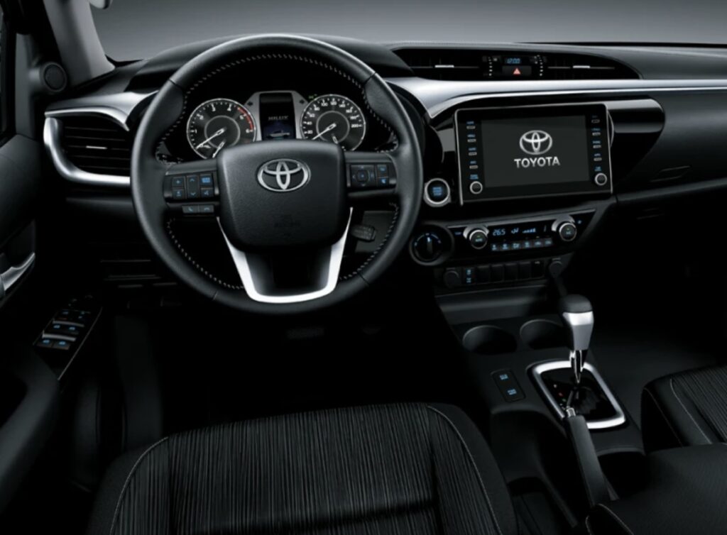 Fully equipped cabin is another attractive feature of 2021 Toyota Hilux. Hilux interior features 8-inch color touchscreen, Apply Car Play and Android Auto, and a class leading sound system. Well appointed interior comfortably seats four adults with plenty of legroom and headroom. The top spec Invincible X variants are fitted with JBL sound system.