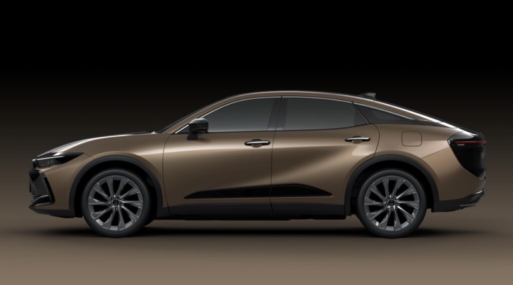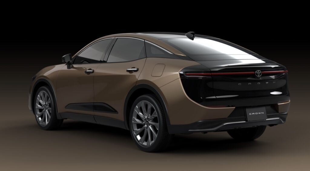 Crown crossover scheduled to go into production by January 2023 features a stylish coupe like design with elevated stance projecting the sportiness of the vehicle. Two types of powertrains are available – a hybrid system powering the crossover model which combines a 2.5-liter in-line 4-cylinder engine and an electric system fed by newly-developed bipolar nickel-hydrogen battery pack and a hybrid system combining an inline 4-cylinder turbo engine along with eAxle electric powertrain fed by bipolar nickel-hydrogen battery pack.