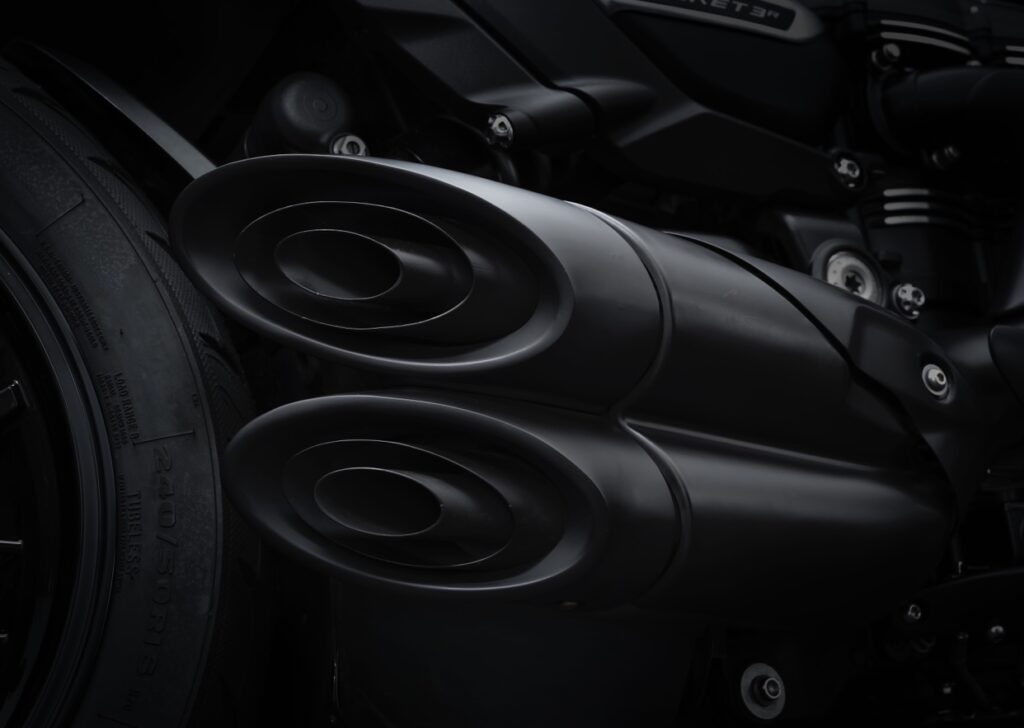 The new Rocket limited edition line-up is powered by the 2,500cc triple engine delivering massive 221 Nm of torque @ 4,000rpm and peak power of 167 PS available from a low 3,500rpm, up to 7,000rpm. Worlds largest production motorcycle engine equipped Rocket 3 has demonstrated 0-100Kmph in just 2.73 seconds. Engine is paired with a six-speed helical-cut gearbox and a ’torque assist’ hydraulic clutch. The engine is fully blacked out with unique black painted exhaust headers, heat shields, end caps and black powered coated intake cover.
