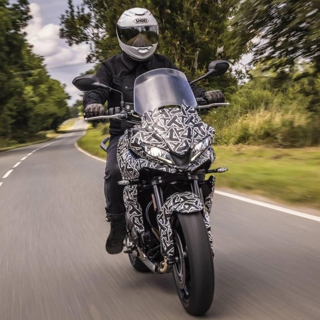 Tiger Sport 660 shares major components with Trident 660 including frame, swing arm and engine. It features upright riding position, tall handle bar, fairing with LED headlights and a wind screen. Triumph has not released more technical details, stay tuned for a first look review.