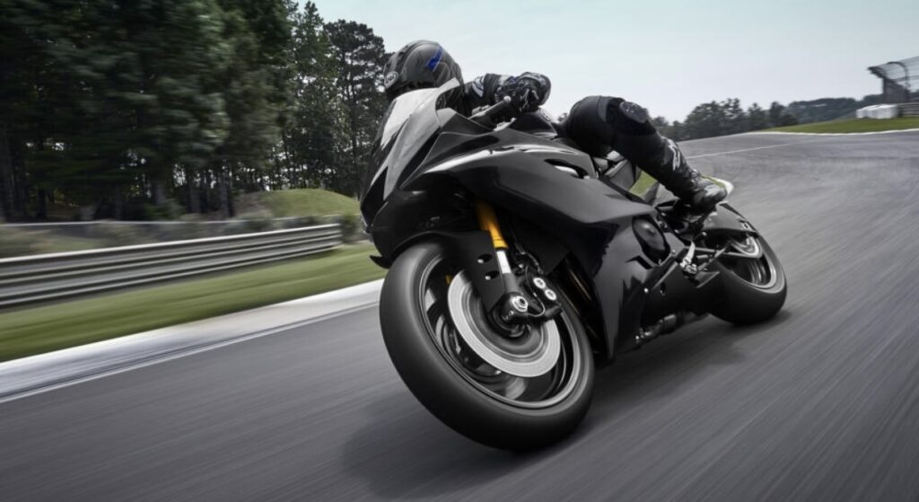 The race-bred motorcycle is powered by a 599cc engine that produces 118.4 horsepower and 61.7 Newton meters of peak torque. The high-performance engine features lightweight forged pistons, titanium valves, a 13.1:1 compression ratio, Yamaha Chip Controlled Intake (YCC-I) and Yamaha Chip Controlled Throttle (YCC-T), as well as a slipper clutch, close ratio 6-speed transmission, and Quick Shift System (QSS) for upshifting at full throttle.