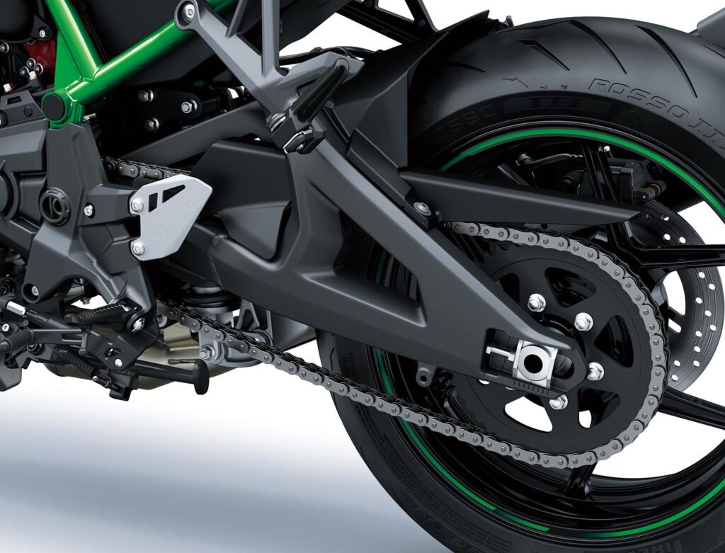 Z H2 sports a Showa SFF-BP at the front. The Uni-Trak rear suspension uses a fully-adjustable Showa shock.
